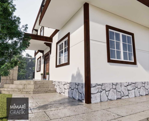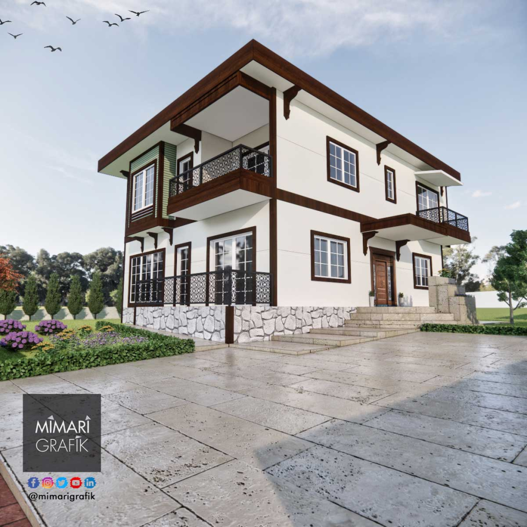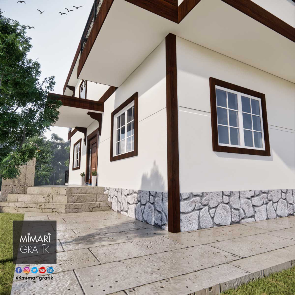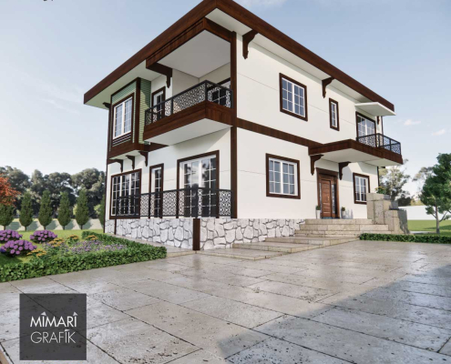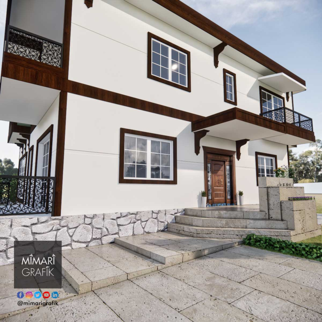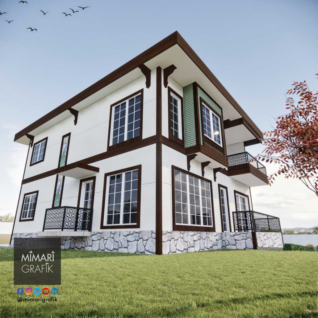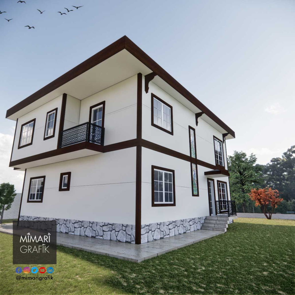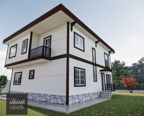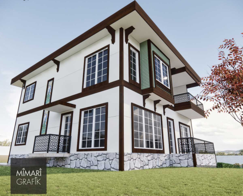 Kocaeli Karamürsel de yapılması planlanan projeye ait eski osmanlı evleri görünümüne sahip dış cephe tasarımı.
